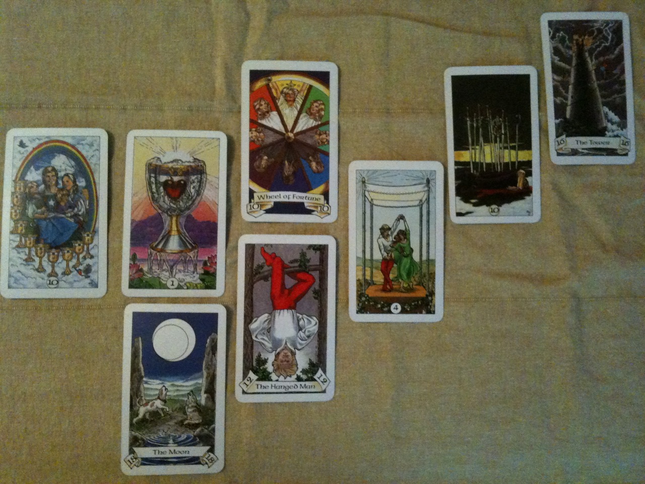 Okay – here is a re-creation of the spread (using a different deck than I did last night).