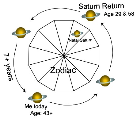During my Saturn return (in 1997 to 1998) Saturn shifted my way of working. Before that time, I worked full time in an office – like most 9-to-5-ers. After my Saturn Return, I have never gone back to that. Instead, I have worked primarily out of my home, and with greater independence than before. I have Saturn in Aries, and part of his insistence was for me to be independent and self reliant. Going with the flow is just not in the stars for me this time around.
