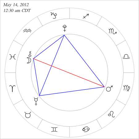 Since it’s Mother’s Day, let’s take this approach. If you are in labor right now, and give birth to a baby boy or girl around midnight CDT, then your child will have a very intriguing birth chart.