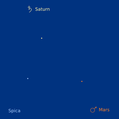 As indicated, what you are looking at is the building of the Mars-Saturn Conjunction I’ve spoken of in the past. We are only eleven days from the peak. What I didn’t realize earlier was the tag along. Spica is the brightest star in the constellation Virgo and is chaperoning the pair as they meet, dance, and then part ways. Mars will keep moving toward the other two until it threads the needle on 8/15.
