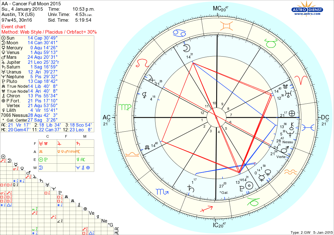In some ways, last night’s full moon grand cardinal cross may simply have been the emotional unveiling of the 2015 syllabus. I think we already intellectually knew—individually and collectively—what we need to work on, so last night simply showed us in an emotional/sensory way.