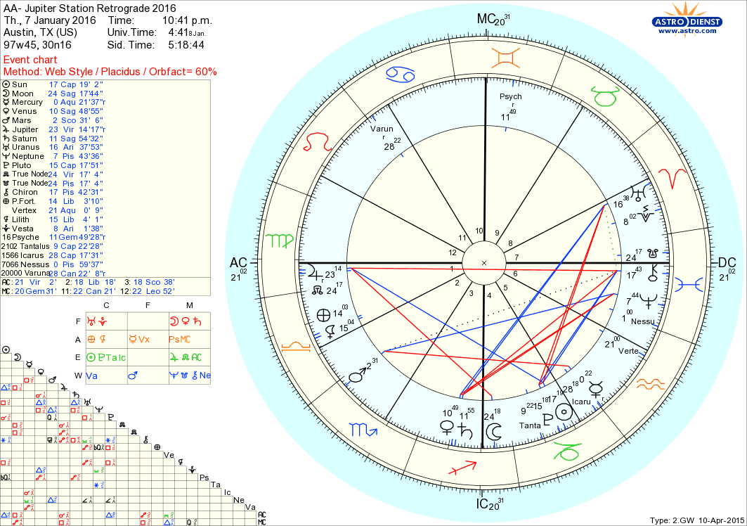 From that moment, Jupiter travels direct for precisely nine months before stationing retrograde on January 7, 2016: