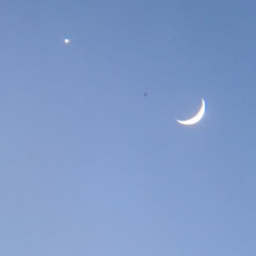 Last night, I hit the roof (left) to see the Moon-Venus conjunction and caught the bats flying overhead. [If you look closely at the picture below/right, you’ll see that a bat photo-bombed my shot!]