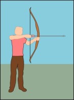 Now let’s compare a couple of drawings. In this first one (left), the archer and the bow are both relaxed. The bow maintains its natural curve and the string is straight. It is taught, but not tense.