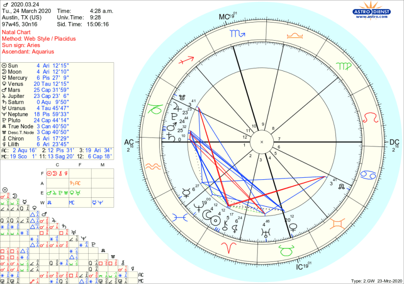 I’ve been in the mood to write about Astrology. The upcoming Aries New Moon occurs overnight US time, so I chose to focus on that chart. It is a fascinating chart indeed! This chart can represent the month ahead, the season ahead, and the whole year ahead.