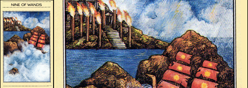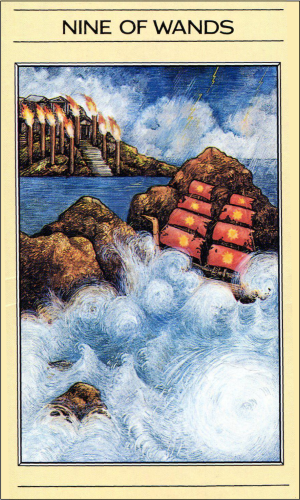 Yesterday, I did a reading using the Mythic Tarot by Tricia Newell. The first card I pulled definitely spoke to me. It was the Nine of Wands.