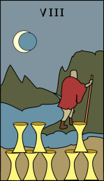 And thus comes the Eight of Cups. It is the moment you stop wishing the lemon tree would produce oranges. You’ve tried enough times and picked enough fruit. You have now accepted the lemon tree for what it is; by letting it go you are able to move on.