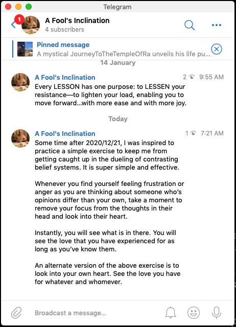 I created a profile on Telegram recently, and was then inspired to create a channel for A Fool’s Inclination. For whatever reason, this app feels really good to me. [Oh, and yes, it snowed here in Austin—biggest snow storm since I moved here 14 years ago!]