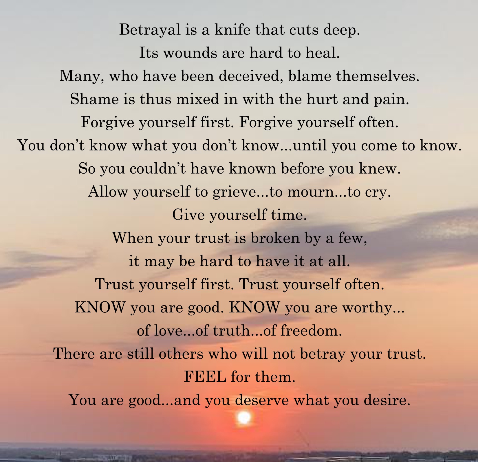 We have already been treading high tides of anger and fear, so those waves might not be noticed. But the betrayal, the guilt, and the regret will be profound…not for everyone, but for those who have clung so tightly to the deception.