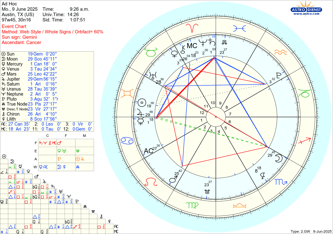 Today is June 9, 2025 and is the day that Jupiter ingresses the sign of Cancer (around 5 pm CDT).