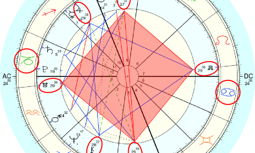 In yesterday's post, I focused on an image created primarily from four planets occupying 17 degrees of their respective signs. Mercury has already moved a full degree since then, but thanks to the moon, we have four planets at 17 degrees again. Yet look at how different the image appears: In this chart, we now… Continue reading One Day Later