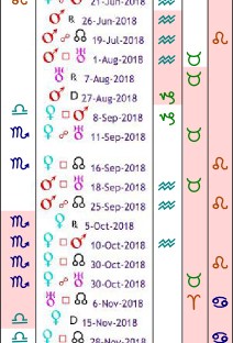 This coming weekend marks the midway point between when Mars Retrograde ended and when Venus Retrograde begins. I have noticed a theme here, which includes more than just Mars and Venus. Consider this chart from the morning of September 6th. The moon in Cancer was exactly opposite Mars in Capricorn. Venus, in Libra was applying… Continue reading A Retrograde Pattern in 2018